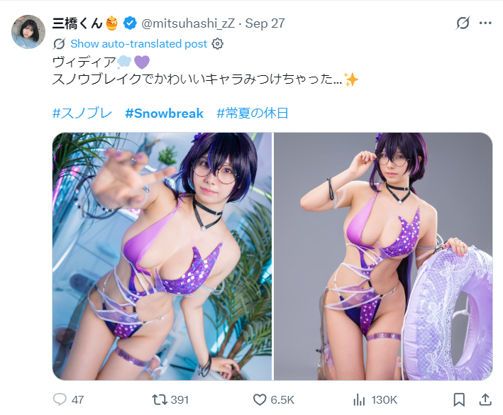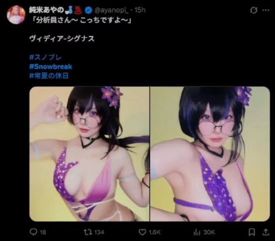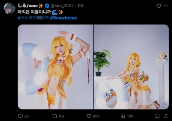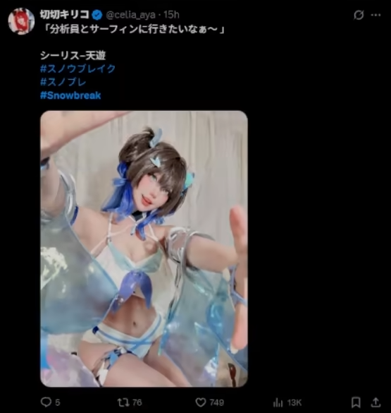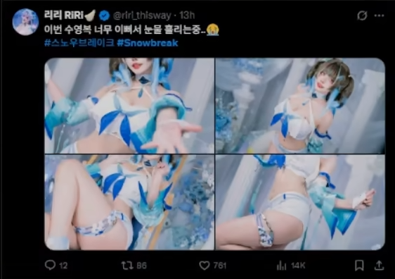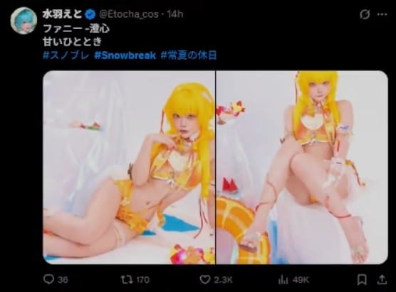 在推特(X)的尘白禁区(国际服)话题上,突然出现大量的职业COSER发布尘白新版本新角色/新时装的COS套图