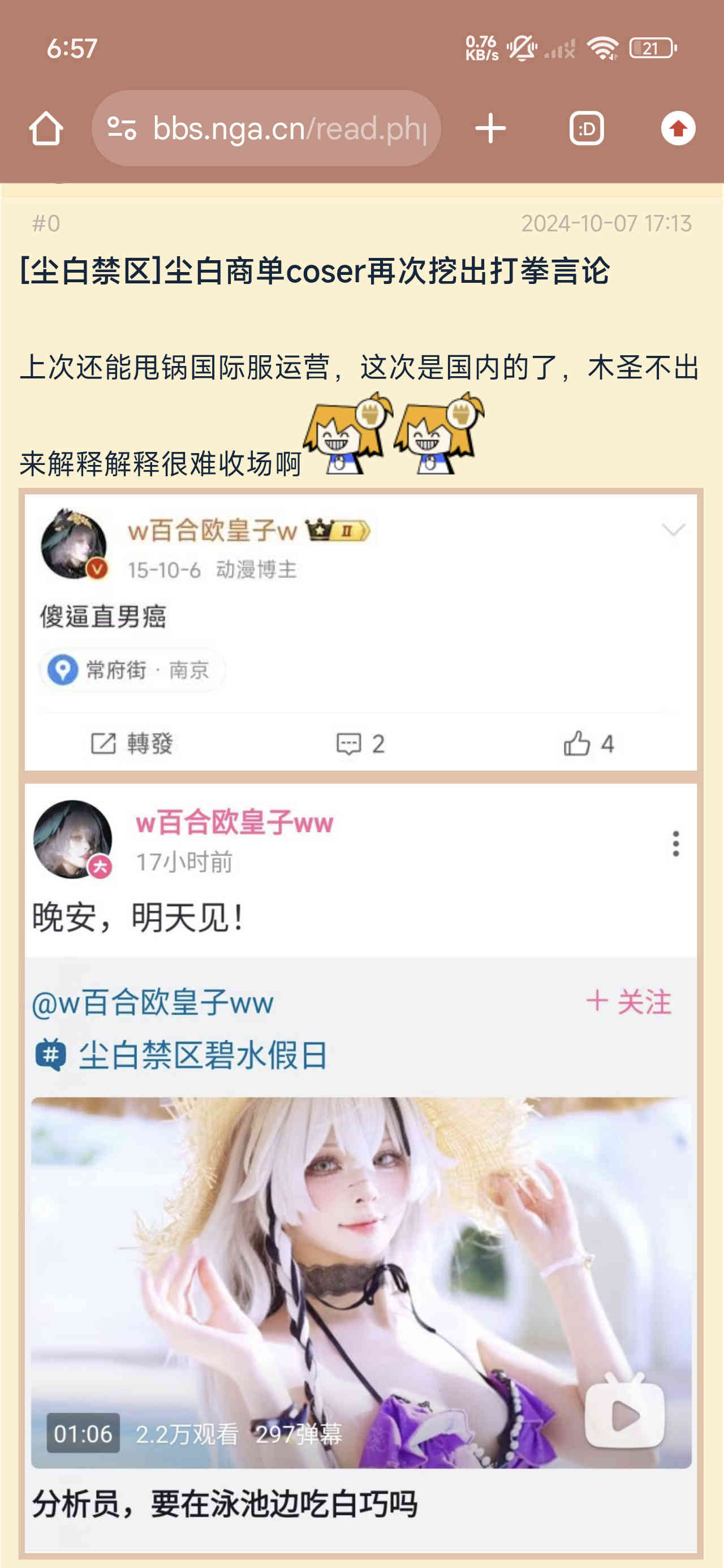 2024-10-07 【事件】尘白禁区国服,COSER,被截出曾经的性别对立发言,舆论再次发酵