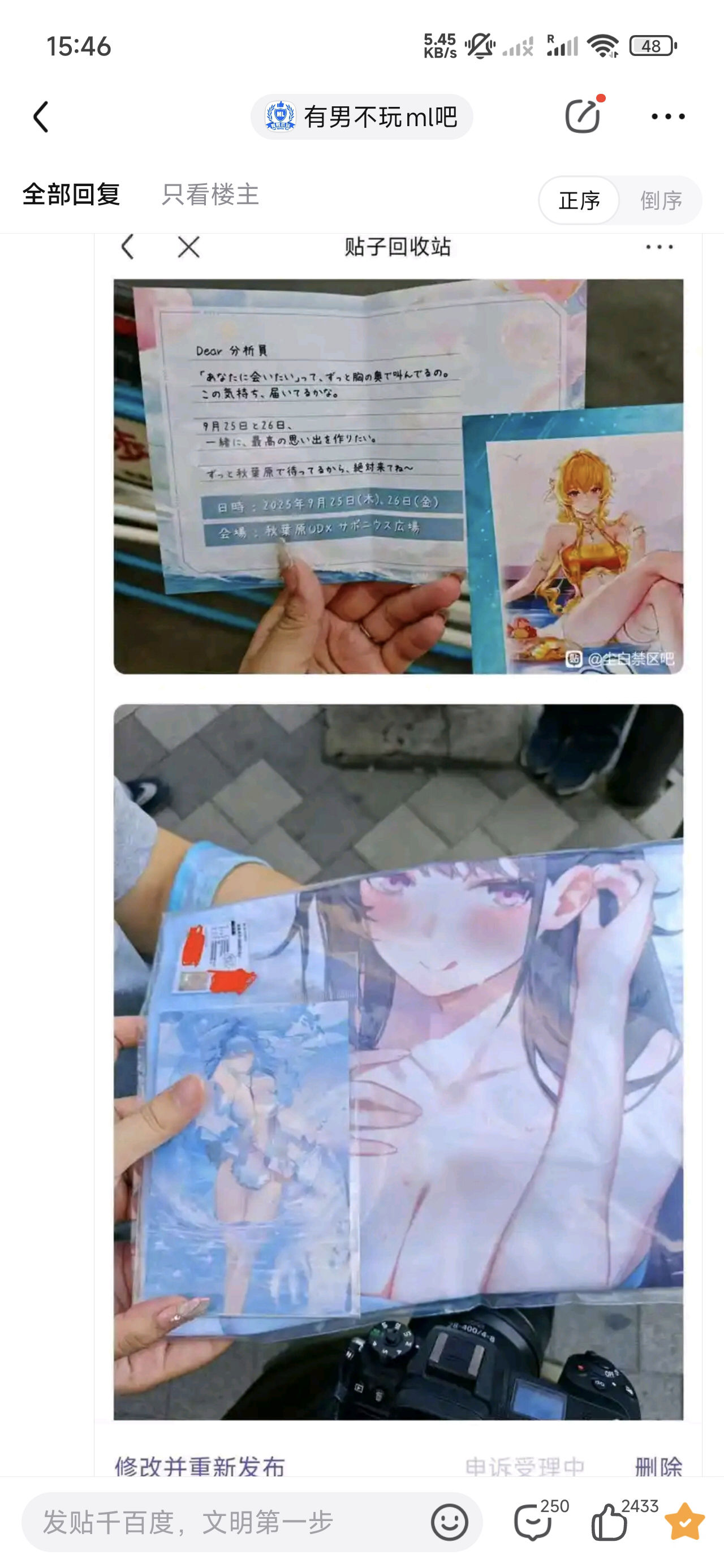2025-09-22 有玩家在尘白禁区吧,分享日本的线下宣发现场,但帖子被尘白禁区吧务迅速删除
