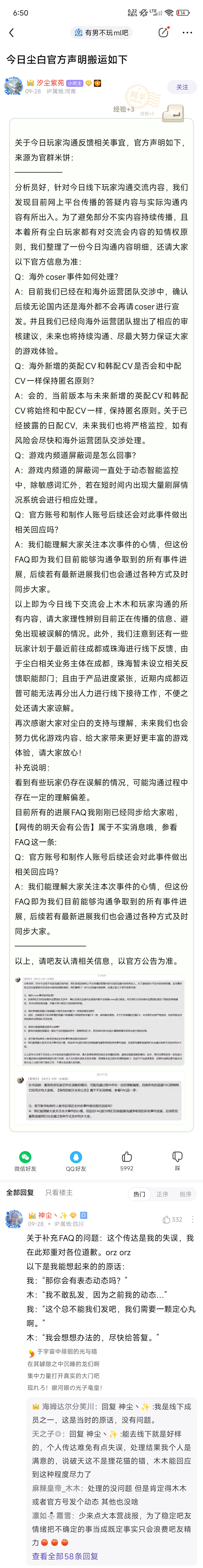 乐子大赏!尘白官方深夜硬刚极端吧友? - 路人甲ost
