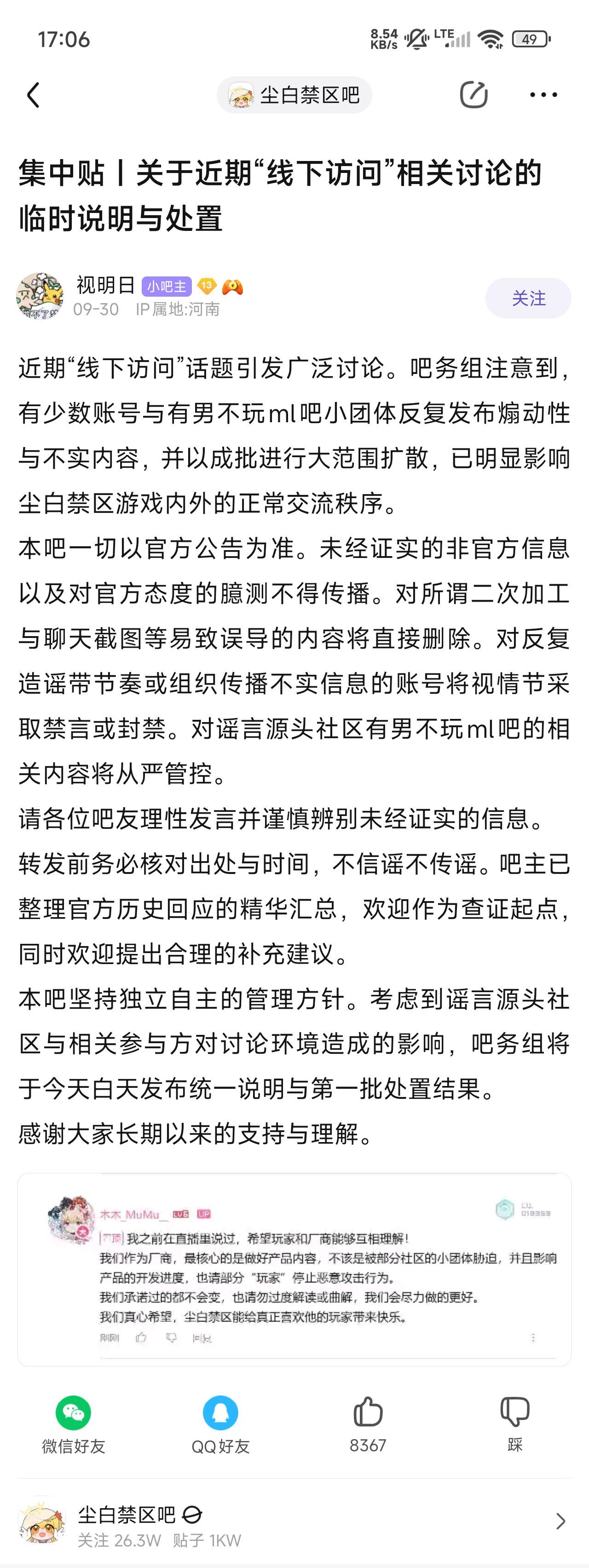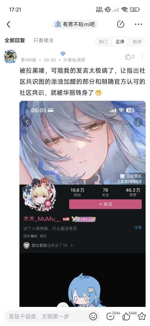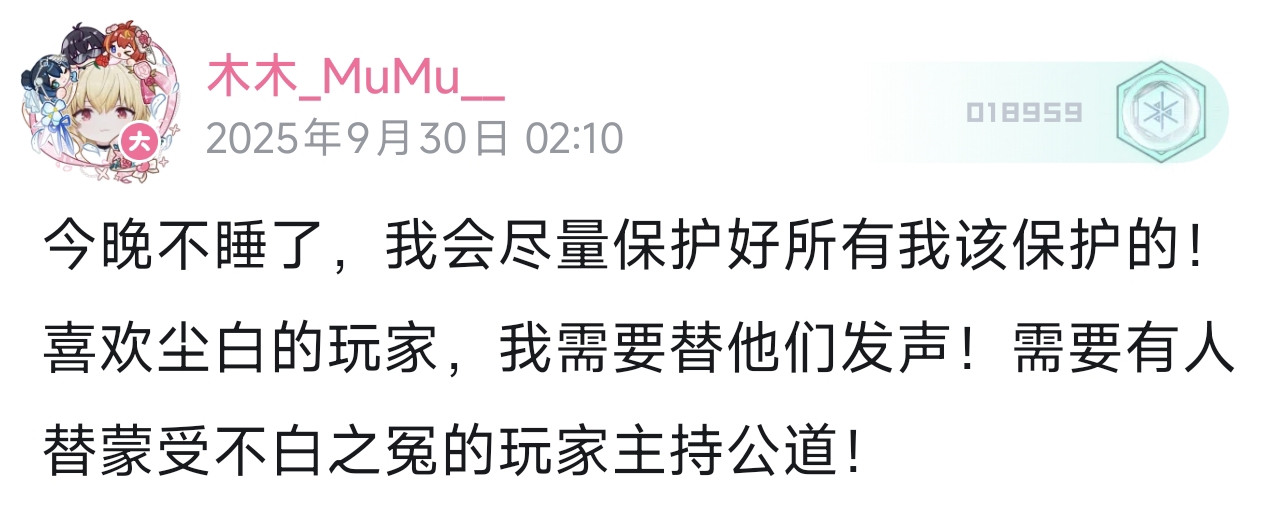 2025年9月30日,木木_MuMu__(尘白禁区官方运营)下场切割有男不玩ml吧"极端小团体"