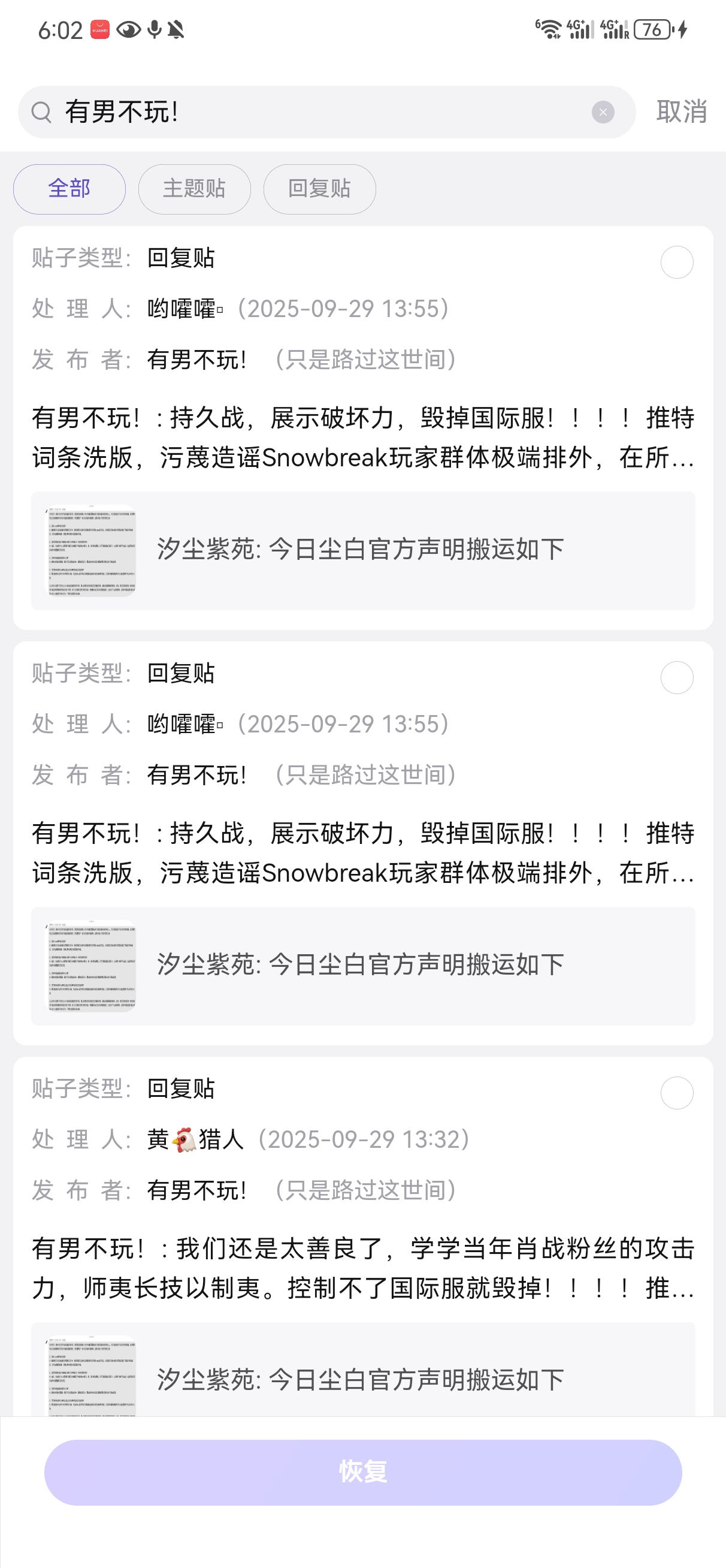 4.2.1、血色大清洗 -【贴吧】有男不玩ml吧的尘白玩家在尘白禁区吧的精品帖被吧务大量删除