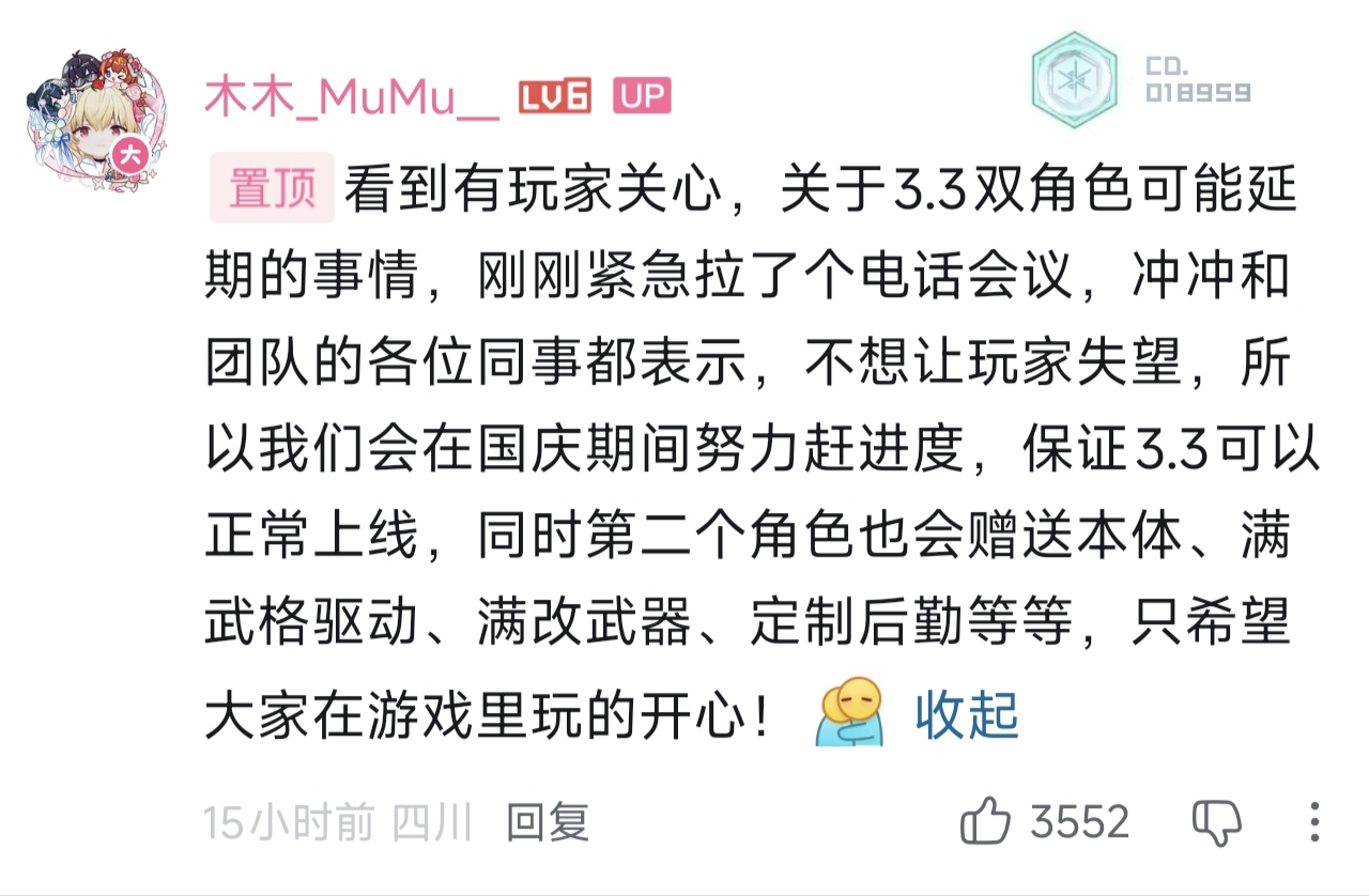 2024-10-07 【官方承诺】木木_MuMu__(尘白禁区制作人),关于对尘白禁区Coser的完整承诺