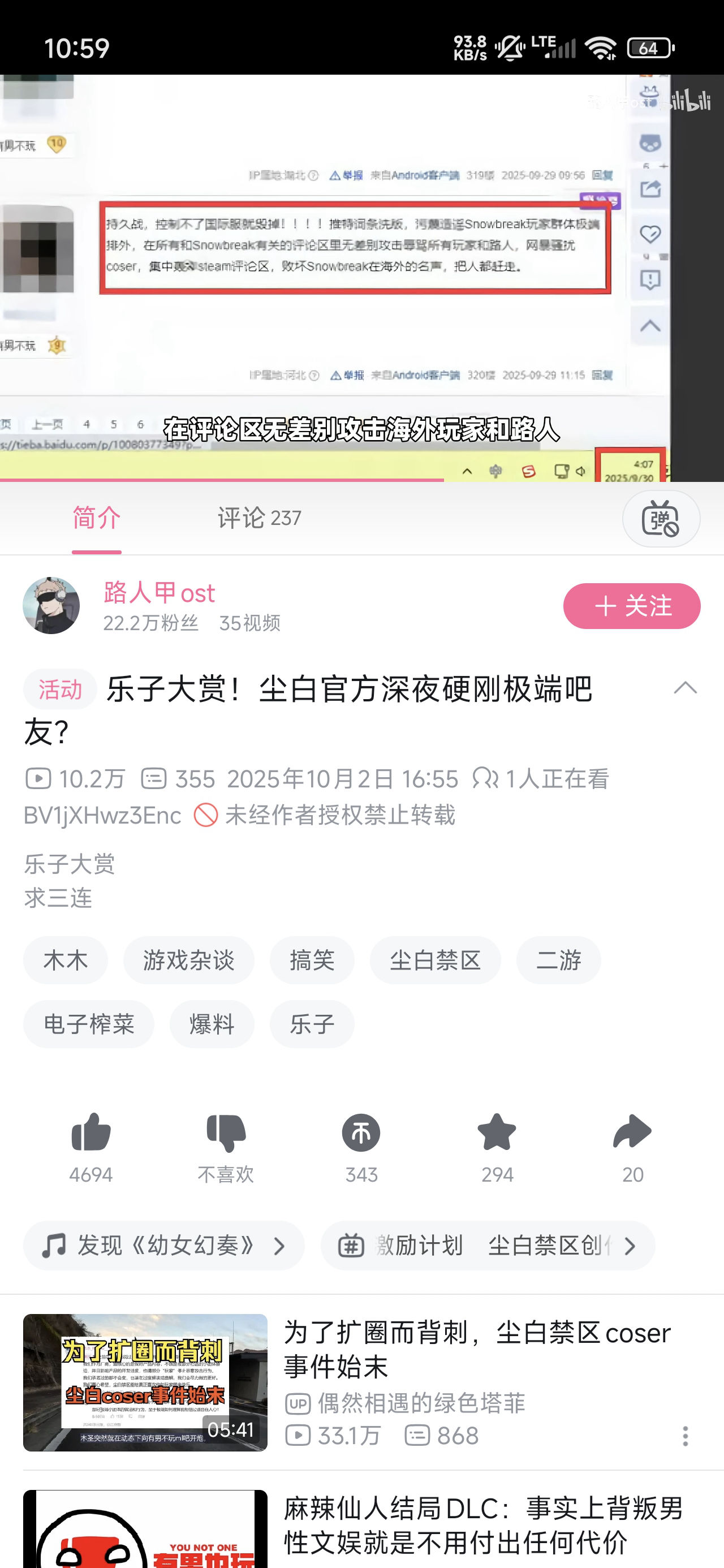 2025-10-02【B站】(营销号洗白白) 乐子大赏!尘白官方深夜硬刚极端吧友? - 路人甲ost(⚠️存在造谣可能)