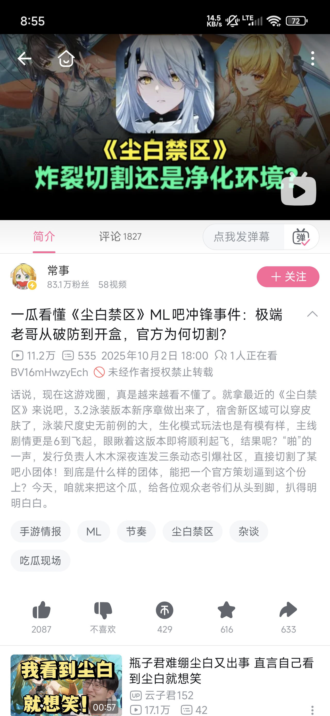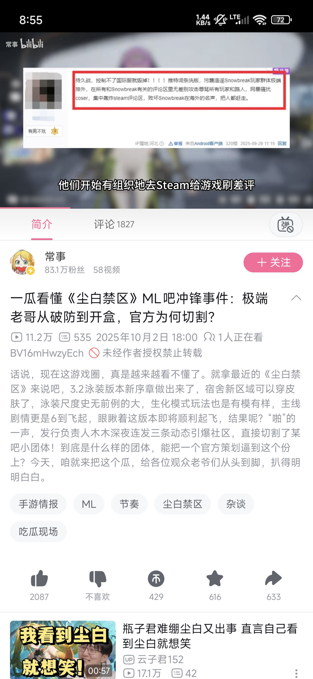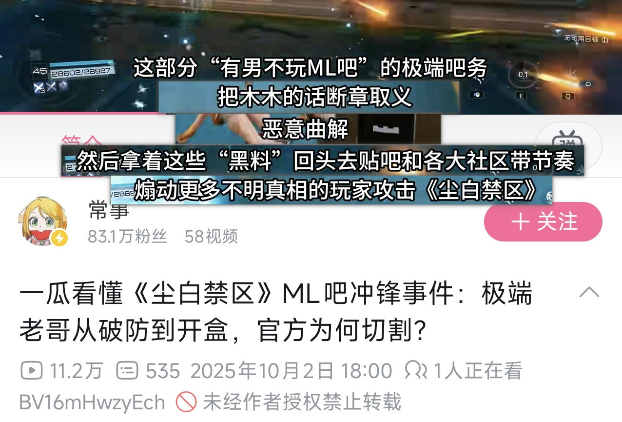 2025-10-02【B站】(营销号洗白白) 一瓜看懂《尘白禁区》ML吧冲锋事件:极端老哥从破防到开盒,官方为何切割? - 常事 (⚠️存在造谣可能)